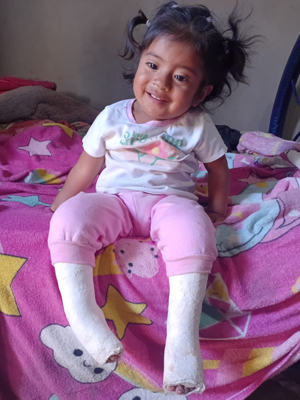 El pie equino varo es una condición congénita que afecta la forma en que los pies de un niño se desarrollan, inclinándolos hacia adentro. Para Sarahi, el tratamiento comenzó con el método Ponseti, reconocido por su eficacia en la corrección de esta condición. Hasta ahora, ha recibido ya dos sesiones de yeso, que han establecido una base sólida para su recuperación. Nos alegra informar que todo ha transcurrido sin complicaciones, lo que es un gran signo de esperanza en su camino hacia la normalidad.